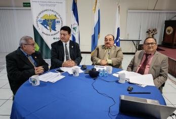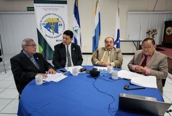 En este primer conversatorio participaron los licenciados: Federico Marenco Mora, Presidente de Junta Directiva; Marvin Ramírez Rosales, Presidente del Tribunal de Honor; Ricardo Illescas Hidalgo, tercer vocal de la Junta Directiva y Luis Corea Asesor de Junta Directiva.